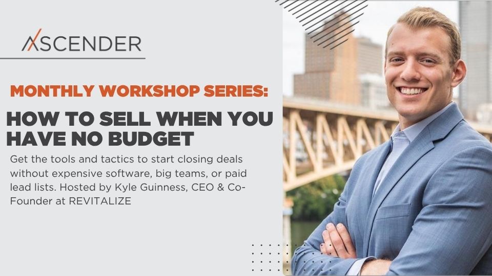 Get the tools and tactics to start closing deals without expensive software, big teams, or paid lead lists. Hosted by Kyle Guinness. Join Ascender and Kyle Guinness, CEO of Revitalize, for a one-hour hands-on workshop on how to start closing deals without expensive budgets. What we'll cover:... Read more »